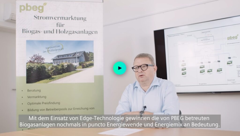 Biogasanlagen sind seit jeher ein fester Bestandteil der PBEG. Seit der Gründung beschäftigt sich unser Unternehmen intensiv mit dem Bau und der umfassenden Betreuung solcher Anlagen – von der Projektierung bis zur Inbetriebnahme und der laufenden Betreuung. Im Zuge der fortschreitenden Digitalisierung konnte hier auch die Vermarktung der in Biogasanlagen erzeugten Regelenergie realisiert werden. Um mit unseren Kunden am Regelenergiemarkt erfolgreich zu sein, vertrauen wir auf IT/OT-Konvergenz und Industrial Edge von Siemens.